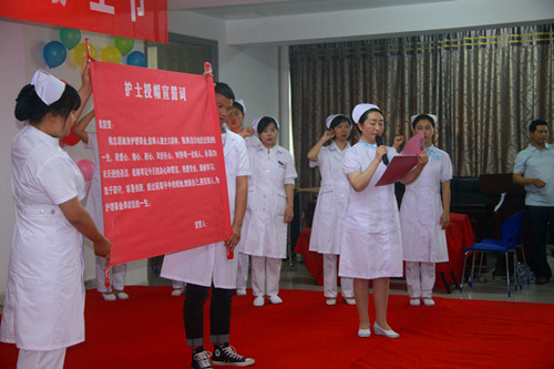 李勝利院長(zhǎng)代表我院在會(huì)上作了講話,勉勵(lì)醫(yī)學(xué)系學(xué)生發(fā)揚(yáng)南丁格爾精神,承擔(dān)起守護(hù)生命、守護(hù)健康的神圣使命,用勤勞的雙手和博大的愛(ài)心關(guān)愛(ài)病人,獻(xiàn)身醫(yī)學(xué)護(hù)理事業(yè)。隨后醫(yī)學(xué)系學(xué)生手舉著明亮的蠟燭,身著潔白的護(hù)士服,護(hù)理部主任方華、消化內(nèi)科護(hù)士長(zhǎng)吳丹芬與醫(yī)學(xué)系護(hù)理老師一起給即將畢業(yè)的護(hù)生進(jìn)行授帽并進(jìn)行了宣誓。