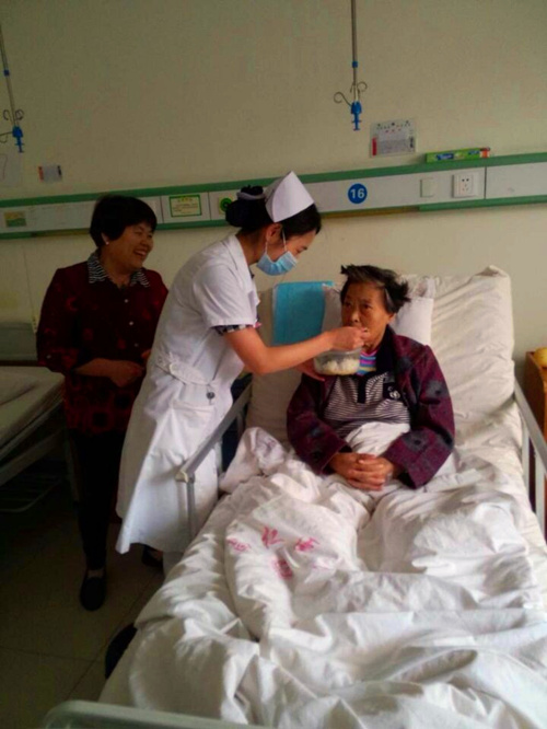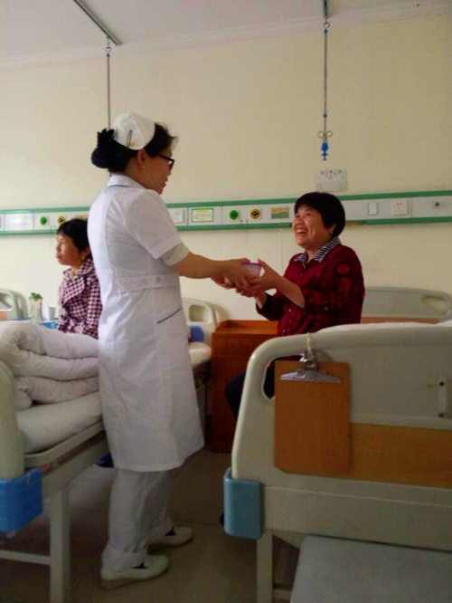 一位老病號李阿姨,是個冠心病患者, 她還伴有胃病,子女都在外地,老伴也早年去世了。每次住院她都是一個人,胃口不好,常常中午在外面炒一個菜,買一份飯,十幾塊錢,吃不完晚餐就接著吃冷飯,以前我們總勸她李阿姨你不能這樣吃,很傷身體的,她每次都笑著說:“沒事,我在家一個人懶得做飯也都吃上一餐剩下的”。這次入院我們主動把她買來的飯熱好給她送過去,她很開心,不停的說:“謝謝你們,謝謝,你們就像是我的孩子,在這里比在家更溫暖”。沒想到只是一個小小的舉動就能讓老人這么感動,我們發(fā)現(xiàn)病人要的真不多,我們只要一點(diǎn)愛心,病人就會對我們感恩,同時這也給了我們足夠的信心,一定要把這件事做好,堅持下去。