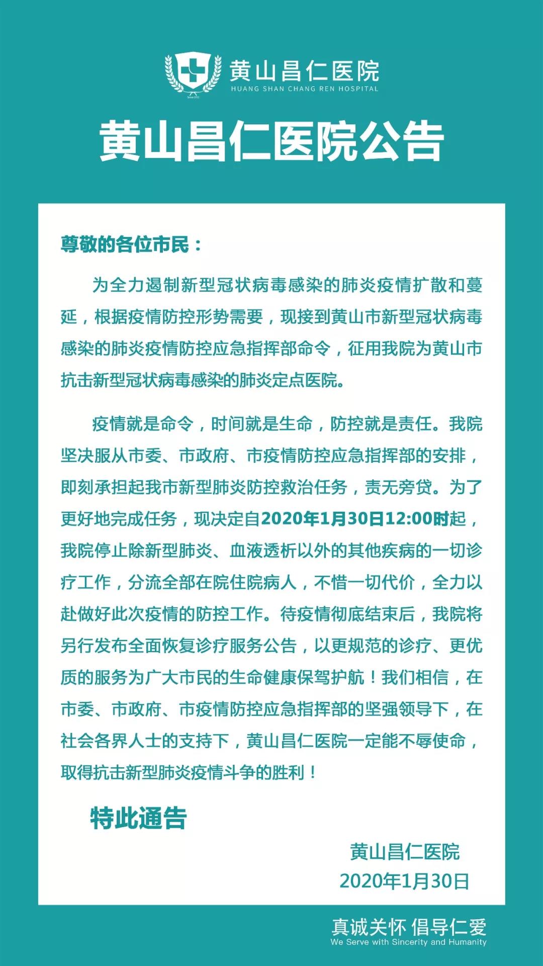 黃山昌仁醫(yī)院公告